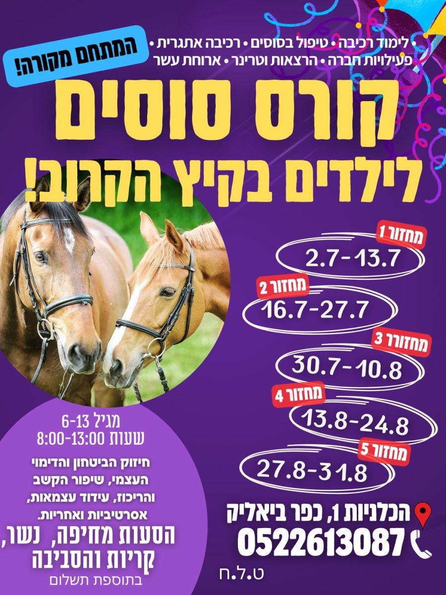 בלב הכפר הקסום- כפר ביאליק השוכן בלב הקריות ממוקמת חוות הסוסים הקסומה המקנה למבקרים בה שלל חוויות החל מטיול מושלם בחוות הסוסים, צפייה במופעי סוסים מרהיבים ועד לרכיבה טיפולית ועוד...